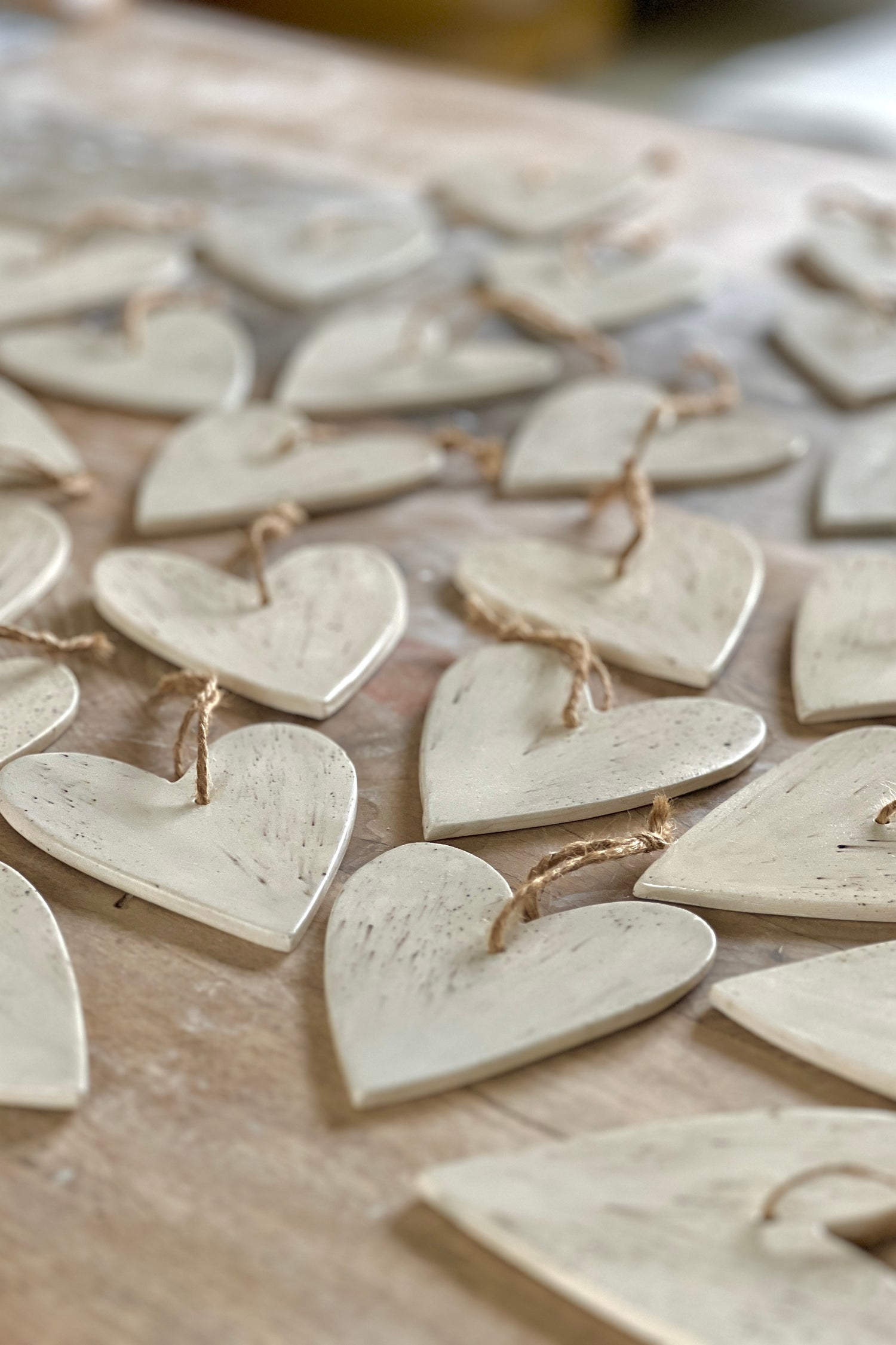 Des coeurs en grès blanc, émaillés sur le recto. Collection de pièces...