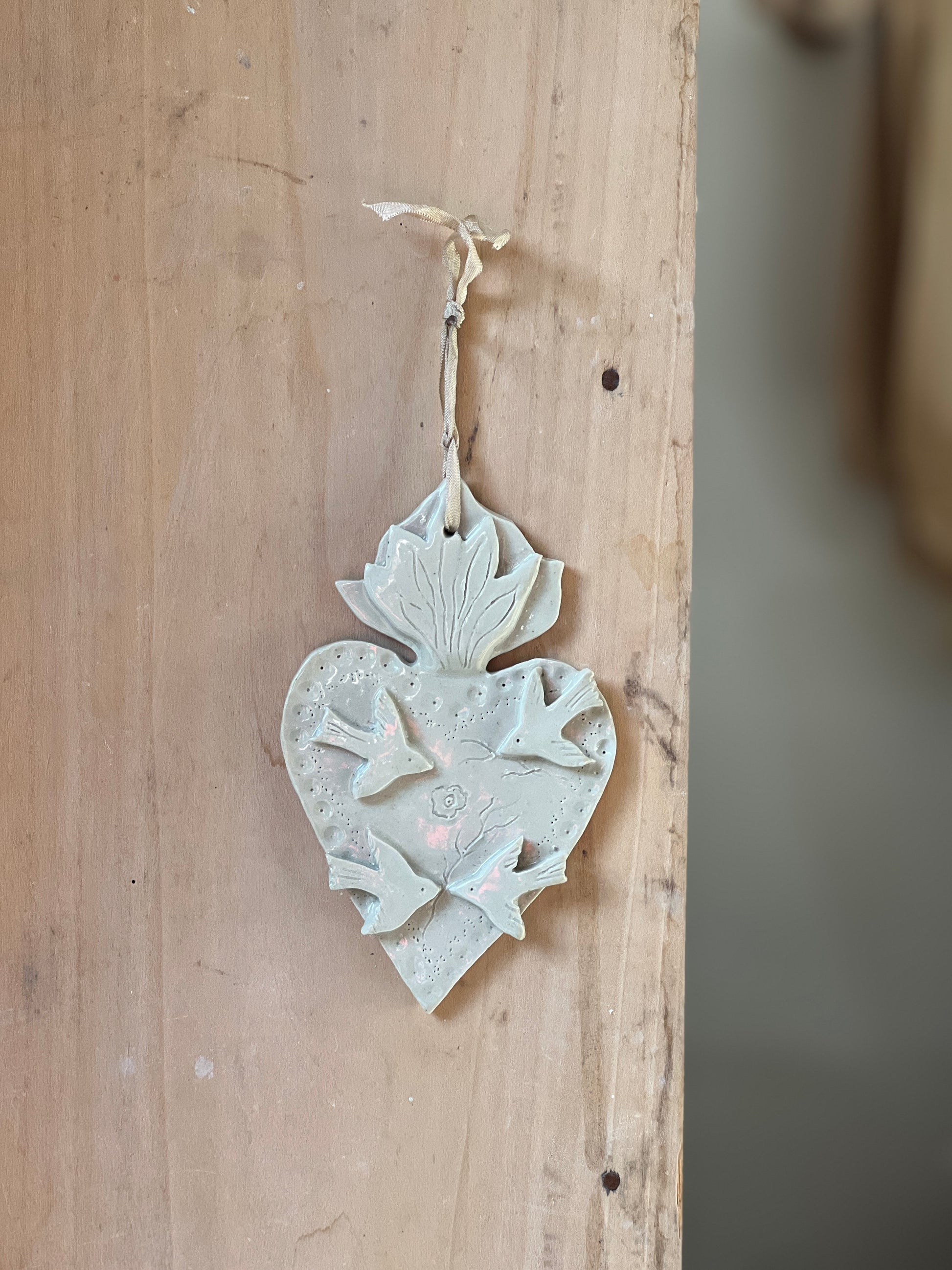 Coeur ex voto en grès blanc émaillé, pièce unique entièrement réalisée à la main. A la fois symbolique et décorative.