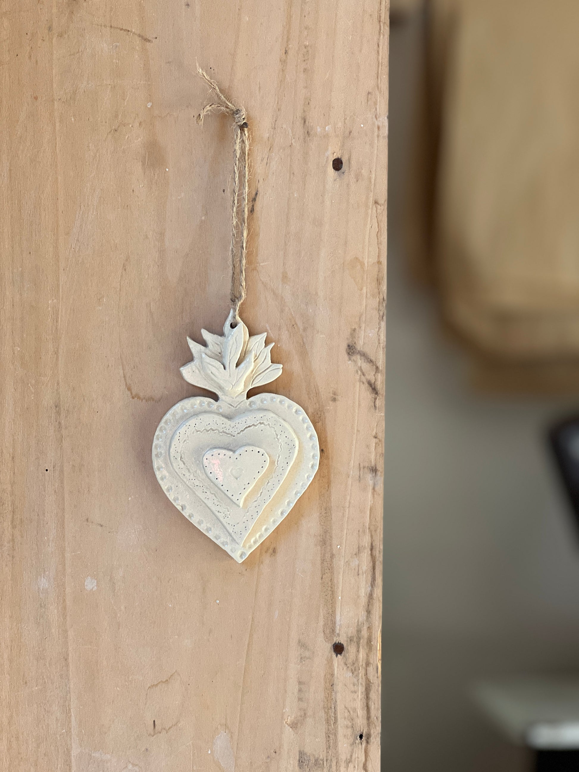 Coeur ex voto en grès blanc émaillé, pièce unique entièrement réalisée à la main. A la fois symbolique et décorative.