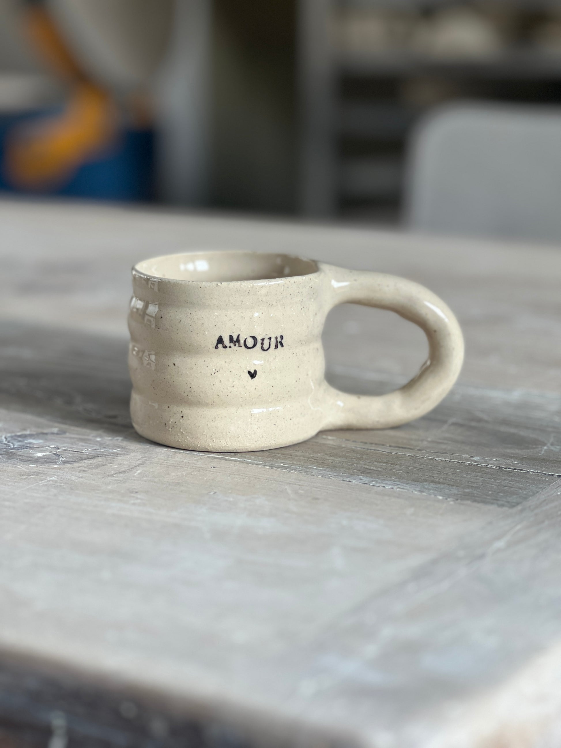 Mug en terre recyclée émaillé entièrement tournée à la main. Pièce unique aux marbrures aléatoires. Idéal pour vos boissons d'hiver.