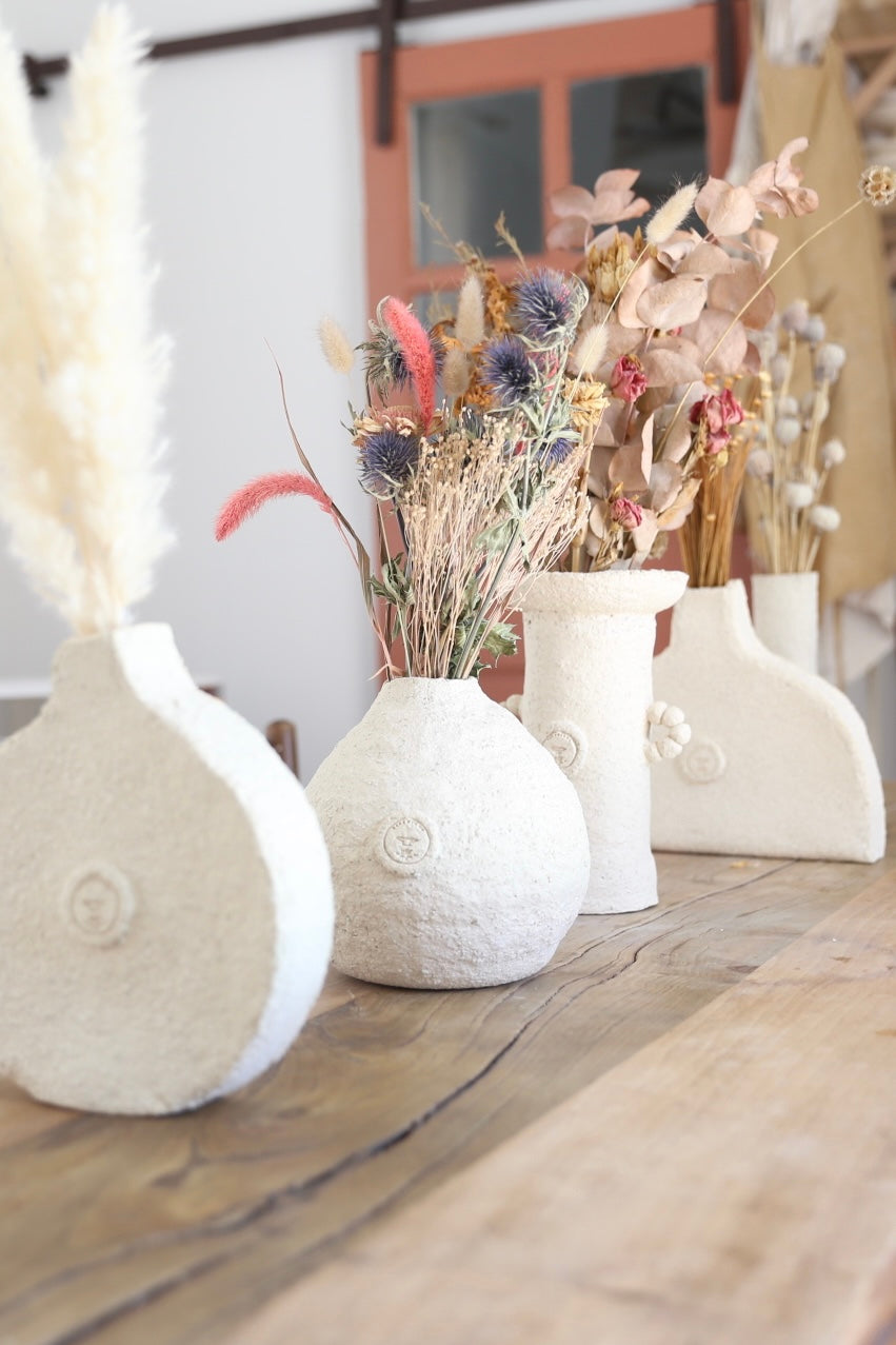 Une collection en grès chamotté, une terre brute et texturée, aux formes innovantes. Des vases créés pour devenir des pièces fortes de votre décoration.